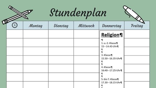 © Stundenplan zum Ausdrucken Kribbelbunt