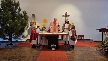 Unter dem Motto: „Schule statt Fabrik“ zogen unsere Sternsinger (11 Kinder mit der Unterstützung von einigen Erwachsenen) los und segneten Häuser und sammelten Geld für die Kinder weltweit. Für Kinder aus Bangladesch, dem Partnerland der diesjährigen Strensingeraktion. Dort suchen Projektpartner der Sternsinger Fabriken und Werkstätten auf und befreien die Kinder aus gefährlichen Arbeitsstätten. Sie sorgen für Schulbildung, indem sie Familien unterstützen und Gemeinschaften darüber aufklären, dass jedes Kind das Recht hat, zur Schule zu gehen. Die Sternsinger folgen einem Stern wie die Heiligen drei Könige. Im Evangelium heißt es „Und siehe, der Stern, den sie hatten aufgehen sehen, zog vor ihnen her bis zu dem Ort, wo das Kind war; dort blieb er stehen. Als sie den Stern sahen, wurden sie von großer Freude erfüllt." Die Sternsinger erinnern daran. Sie bringen ebenfalls Freude und Christus Segen. Begonnen hat alles mit der Sendungsmesse und der Segnung unserer Kirche am 04. Januar, danach haben sie die evangelische Kirche besucht, waren im Rathaus Ludwigsfelde. Am 10. Januar haben sie 25 Häuser und zwei Seniorenheime besucht. Und haben dabei eine Summe von 1544 Euro gesammelt. Was für eine tolle Aktion. Ganz herzlichen Dank allen Unterstützern und Planern dieser Aktion. Vielen Dank allen Spendern. Und einen ganz großen herzlichen Dank an alle Kinder die mitgeholfen haben Freude in die Häuser zu bringen und mit dieser Aktion vielen Kindern weltweit helfen. DANKESCHÖN!!